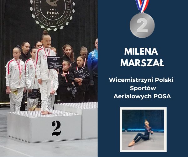 Z radością informujemy, że Milenka Marszał, uczennica klasy 4a, odniosła ogromny sukces podczas Mistrzostw Polski Sportów Aerialowych POSA, które odbyły się w dniach 3–5 października 2025 r. w Cieszynie.