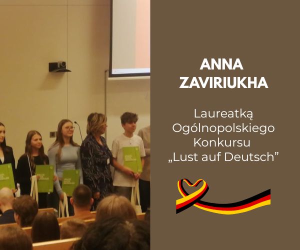 Z ogromną radością informujemy, że Anna Zaviriukha po raz drugi została Laureatką Ogólnopolskiego Konkursu Języka Niemieckiego „Lust auf Deutsch”.