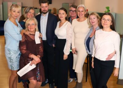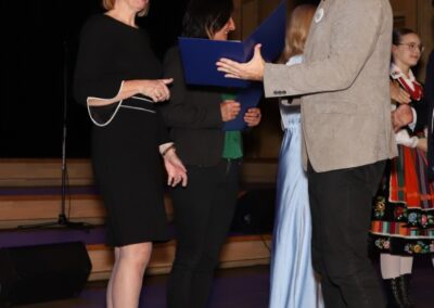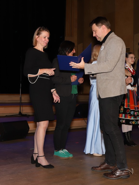 Nauczyciele byli obecni wszędzie tam, gdzie potrzebna była pomoc – zarówno na scenie, jak i za kulisami. To dzięki ich cierpliwości i kreatywności powstały wspaniałe dekoracje, zaproszenia, plakaty i gazetki ścienne. Oni czuwali nad próbami, opiekowali się dziećmi w czasie występów, dbali o oprawę medialną i kontakt z mediami. Wiele z tych działań pozostaje niedostrzegalnych, ale bez nich nie byłoby możliwe stworzenie tak pięknego święta. Dziękujemy za serce, czas i energię włożone w przygotowania – Wasza praca to prawdziwe świadectwo pasji i oddania.