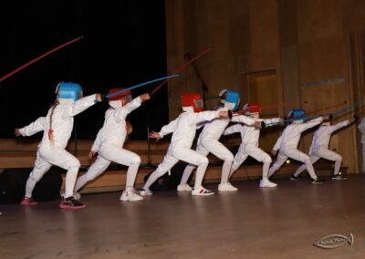 Część artystyczna jubileuszu była niezwykle różnorodna i pełna emocji, a nad jej przebiegiem czuwała niezastąpiona Urszula Bartczak. Uczniowie zaprezentowali fragment przedstawienia „Pchła Szachrajka”, pokaz gimnastyczny, pokaz szermierki oraz sztuk walki. Publiczność zachwyciły tańce ludowe w wykonaniu klas 2b i 3a, a także Zespół Pieśni i Tańca „Opole”. Nie zabrakło też doskonałych aranżacji popularnych piosenek rozrywkowych w wykonaniu szkolnego chóru oraz chóru V Liceum Ogólnokształcącego w Opolu wraz absolwentami z zespołu wokalnego Dylemat. Na trąbce zagrał nasz absolwent – Antoni Lisoń.