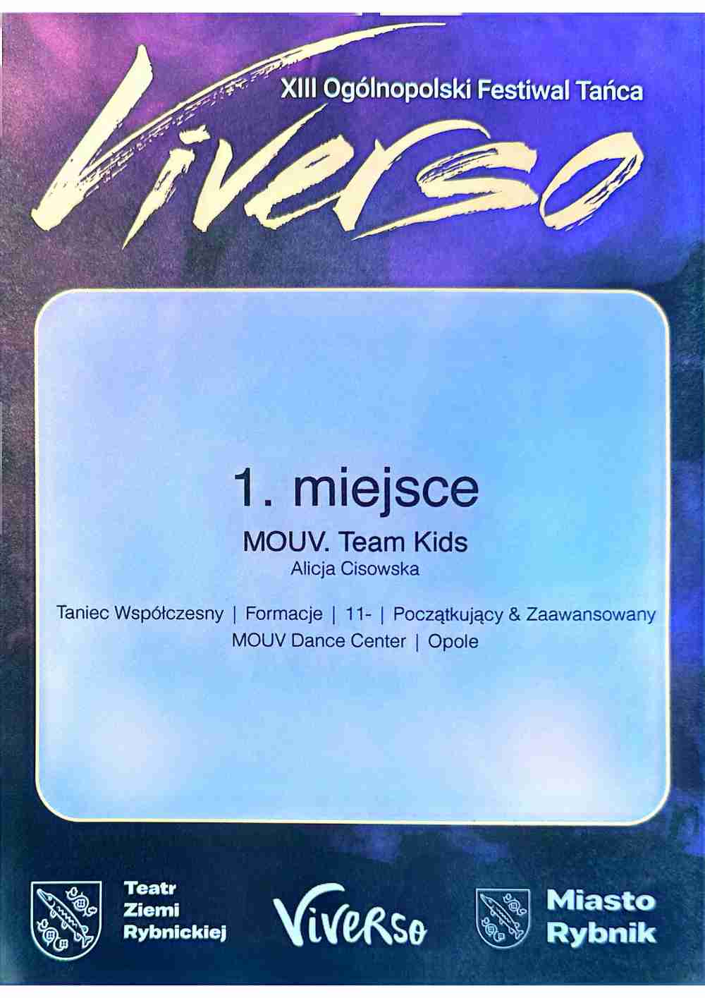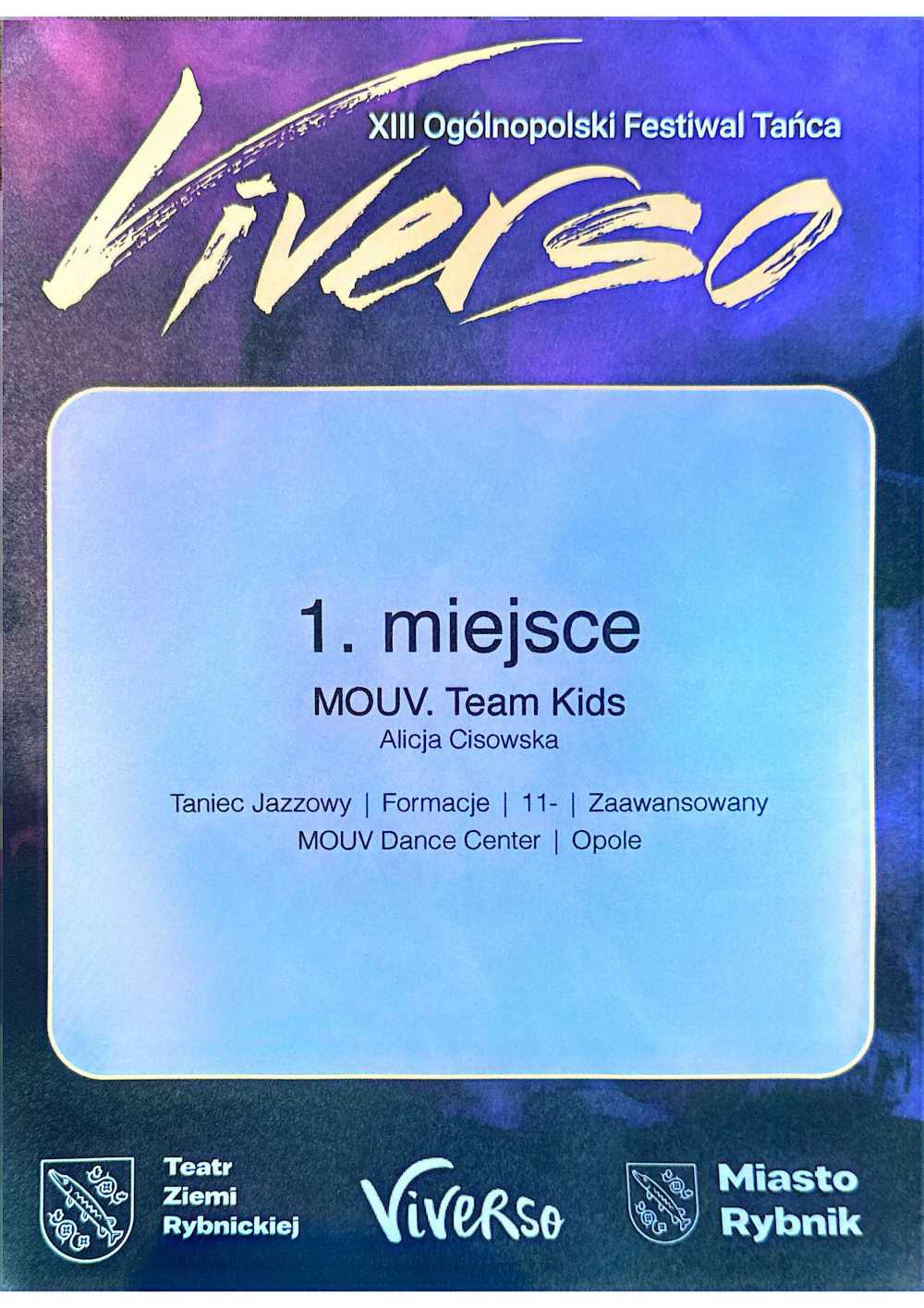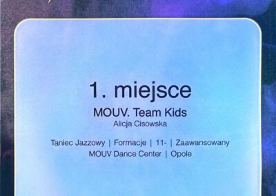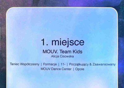 Zuzia Kudłacz z klasy 3a oraz Alicja Cisowska z klasy 4a, wraz ze swoimi grupami tanecznymi z Mouv Dance Center, zdobyły po dwa pierwsze miejsca w kategoriach tanecznych: